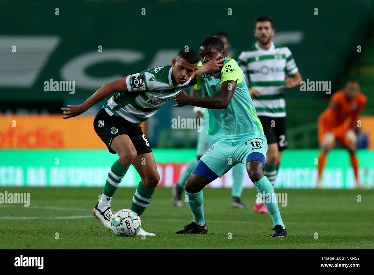 Lisbon Portugal 19th May 2021 Daniel Braganca Of Sporting Cp R Vies With Jean Irmer Of Cs Maritimo During The Portuguese League Football Match Between Sporting Cp And Cs Maritimo At